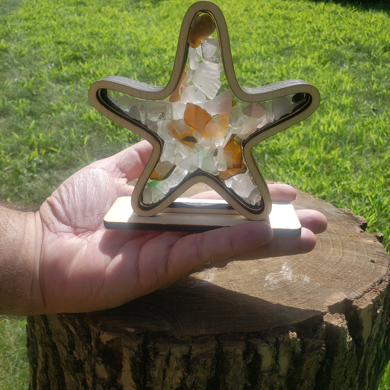 Bass Sea Glass Shadowbox Display Single Sided, Window Hanging, Double Sided Shine-through Shelf Sitter, LED Light, Small