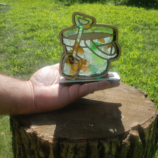 Bucket and Shovel Sea Glass Shadowbox Display, Single Sided, Window Display, Two Sided Shine-Through Design Shelf Sitter, LED Light, Small