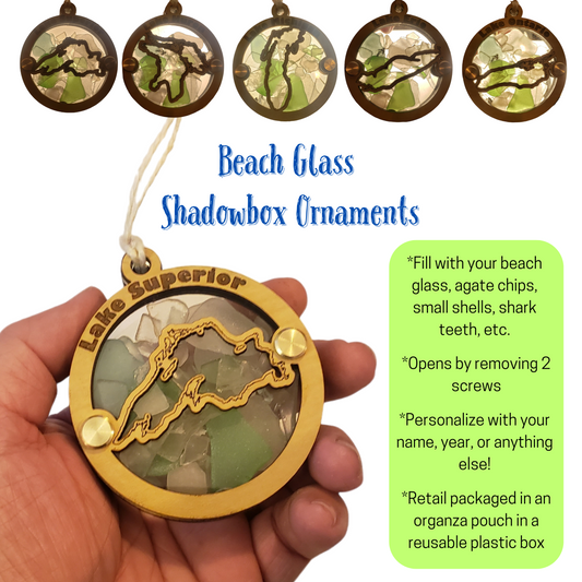 Beaver Island, Michigan Beach Glass Shadowbox Ornament, Lake Michigan