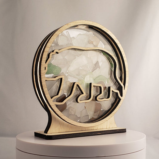 Bear Sea Glass Shadowbox Display Single Sided, Window Hanging, Double Sided Shine-through Shelf Sitter, LED Light, Small