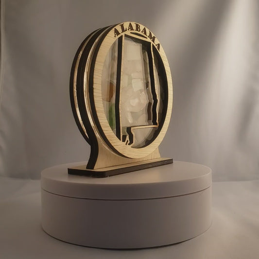 Alabama Round Sea Glass Shadowbox Display Single Sided, Window Hanging, Double Sided Shine-through Shelf Sitter, LED Light, Small