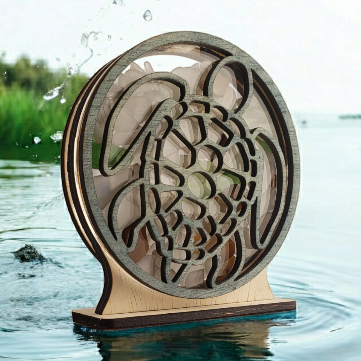 Animal, plant, and shape shadowbox ornaments for sea glass