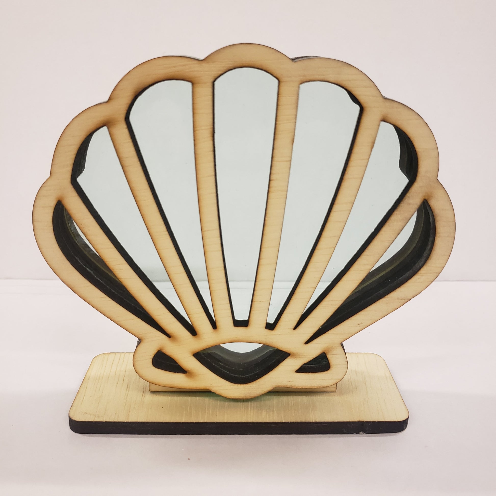 Showcase your beach glass with coastal elegance using our Small Clam Shell Sea Glass Shadowbox. This charming display, shaped like a clam shell, highlights your collection from both sides, adding a touch of seaside allure to any shelf or tabletop.