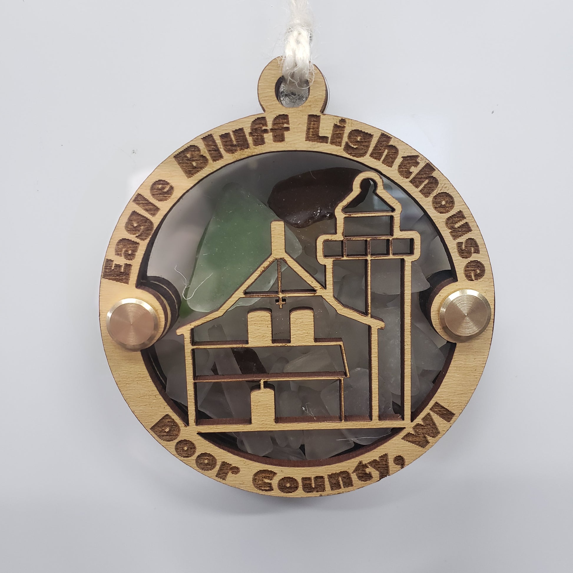 Eagle Bluff Lighthouse, Door County, WI Beach Glass Shadowbox style ornament.