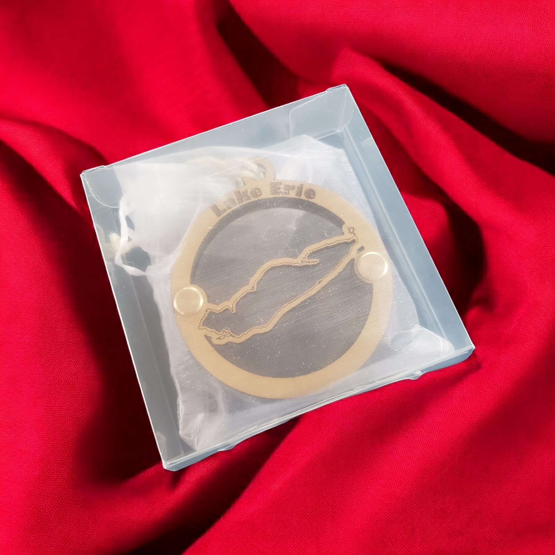 Packaged in an organza pouch inside a reusable plastic box. Makes a great keepsake gift!