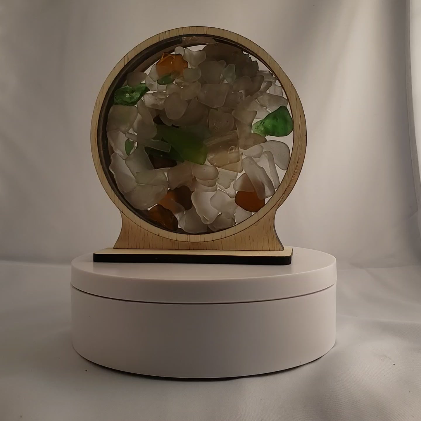 Choose from 13 different color options. The face plate will be dyed the color of your choosing. The double sided Display and LED Night Light versions will be dyed on the front and back. The single sided and window hanging versions will be dyed on the front only. The opening to add your beach glass pieces measures approximately 0.75in x 0.5 in. Sea Glass Not Included.