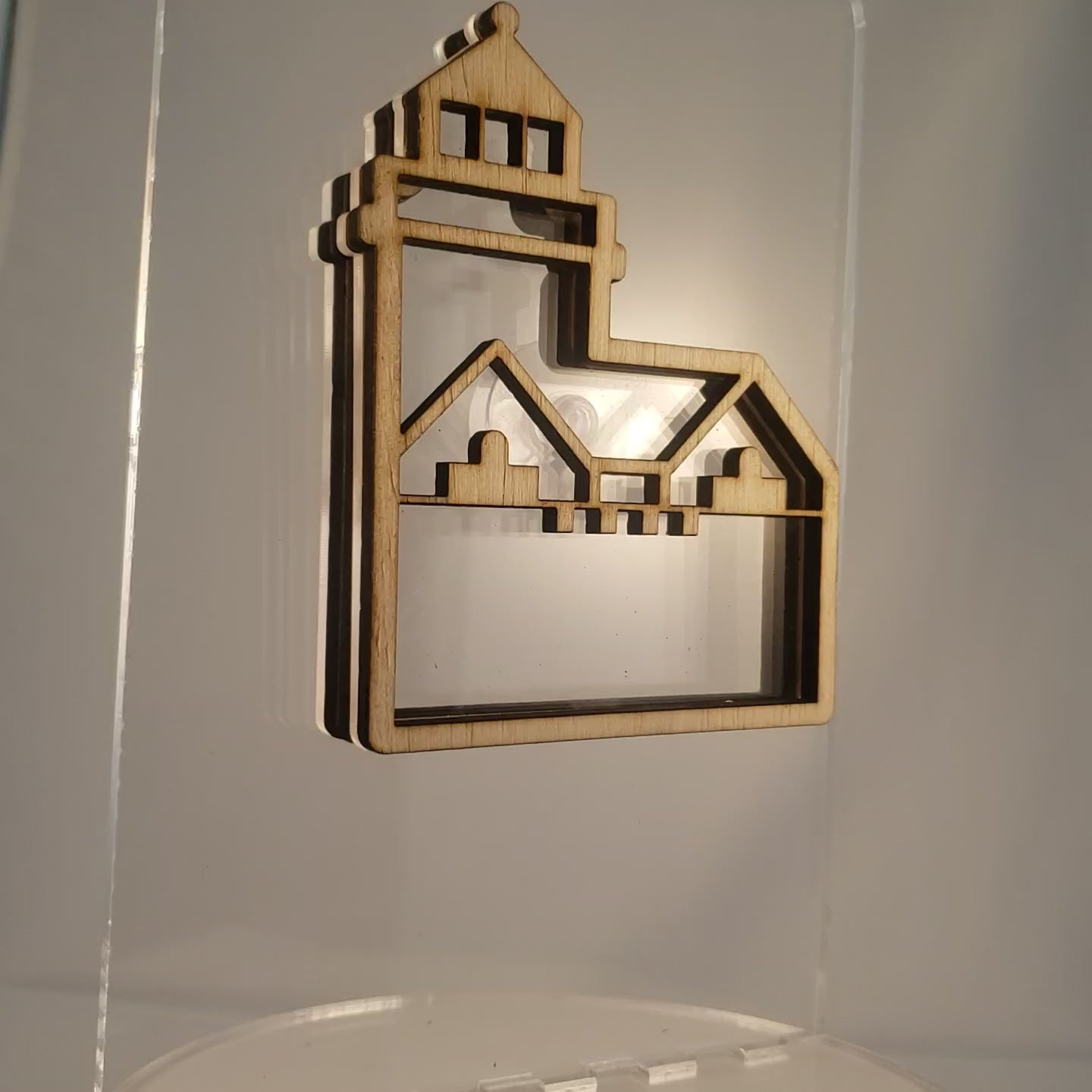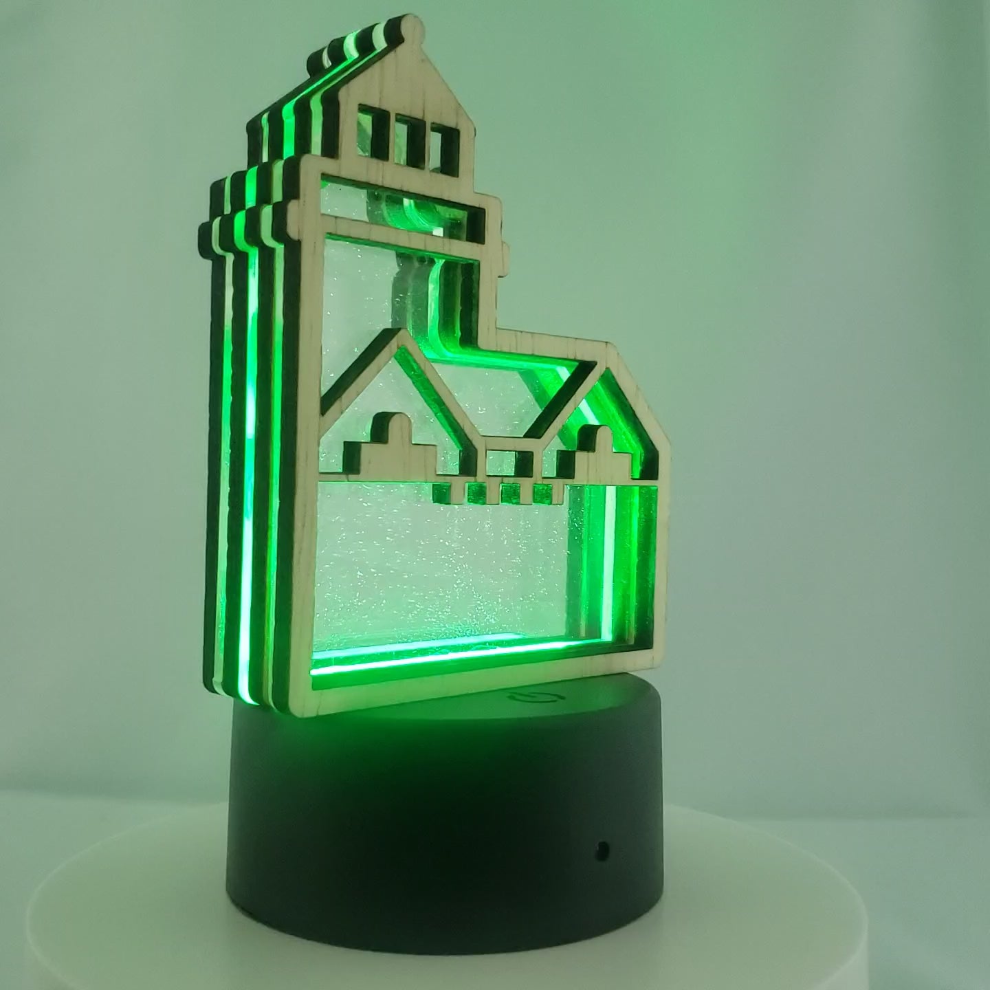 Choose from 4 display styles: *Single Sided with wood back *Double sided with clear acrylic back *Window Hanging with included suction cup *LED Night Light base with Remote control