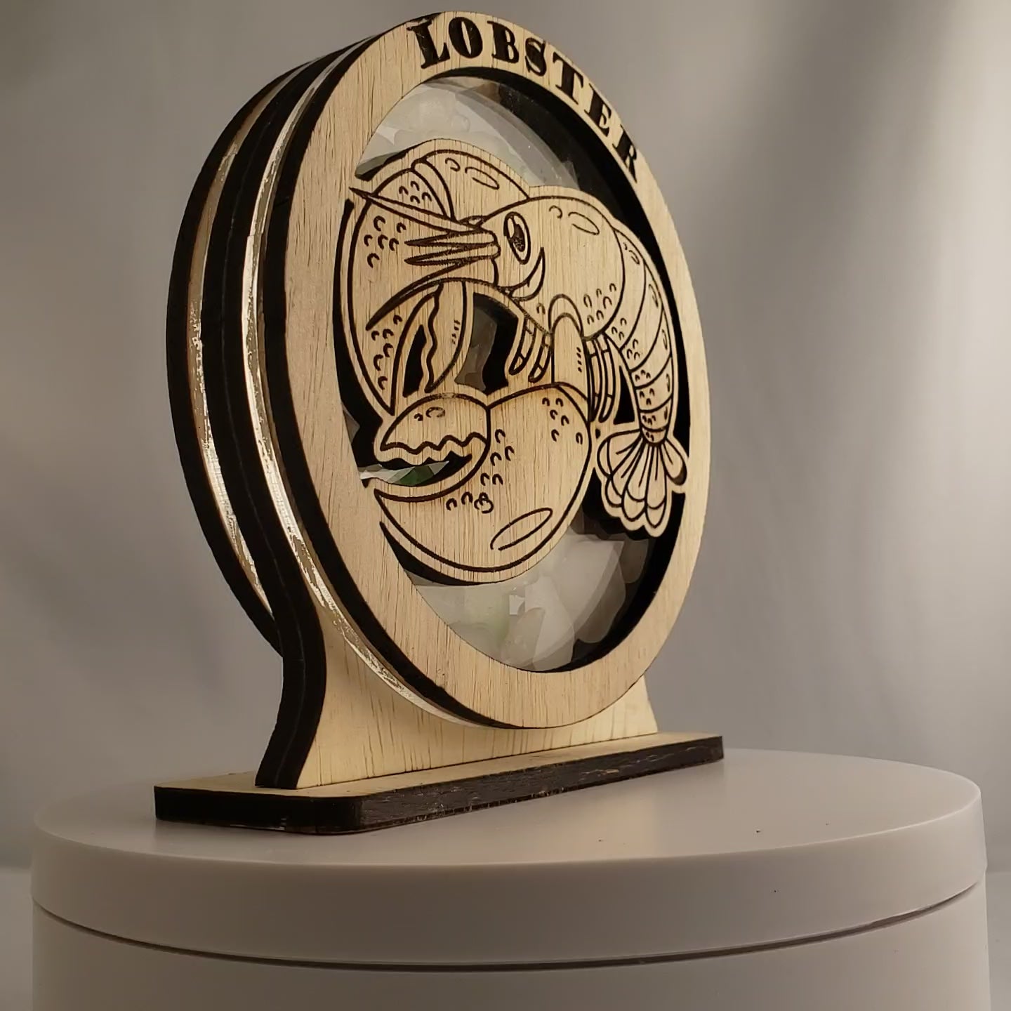 Lobster Sea Glass Shadowbox Display Single Sided, Window Hanging, Double Sided Shine-through Shelf Sitter, LED Light, Small