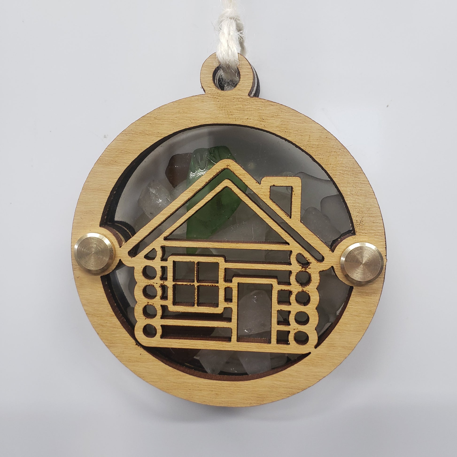 Log Cabin Sea Glass Beach Glass Shadowbox Ornament