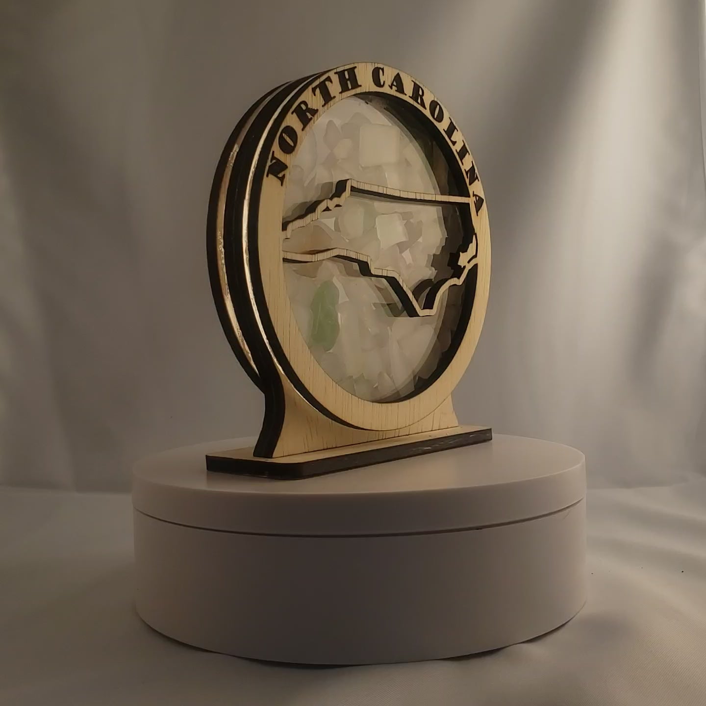 North Carolina Round Sea Glass Shadowbox Display Single Sided, Window Hanging, Double Sided Shine-through Shelf Sitter, LED Light, Small