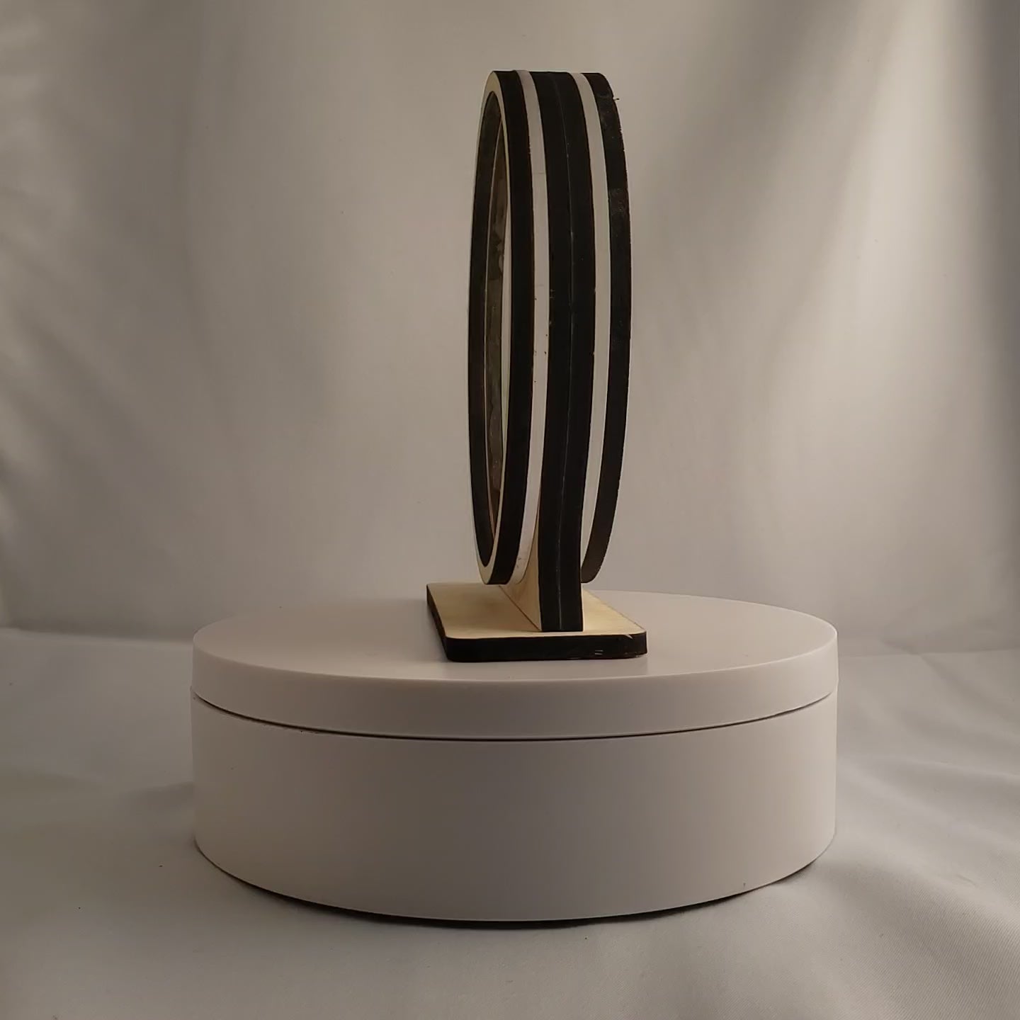 Choose from 4 display styles: *Single Sided with wood back *Double sided with clear acrylic back *Window Hanging with included suction cup *LED Night Light base with Remote control