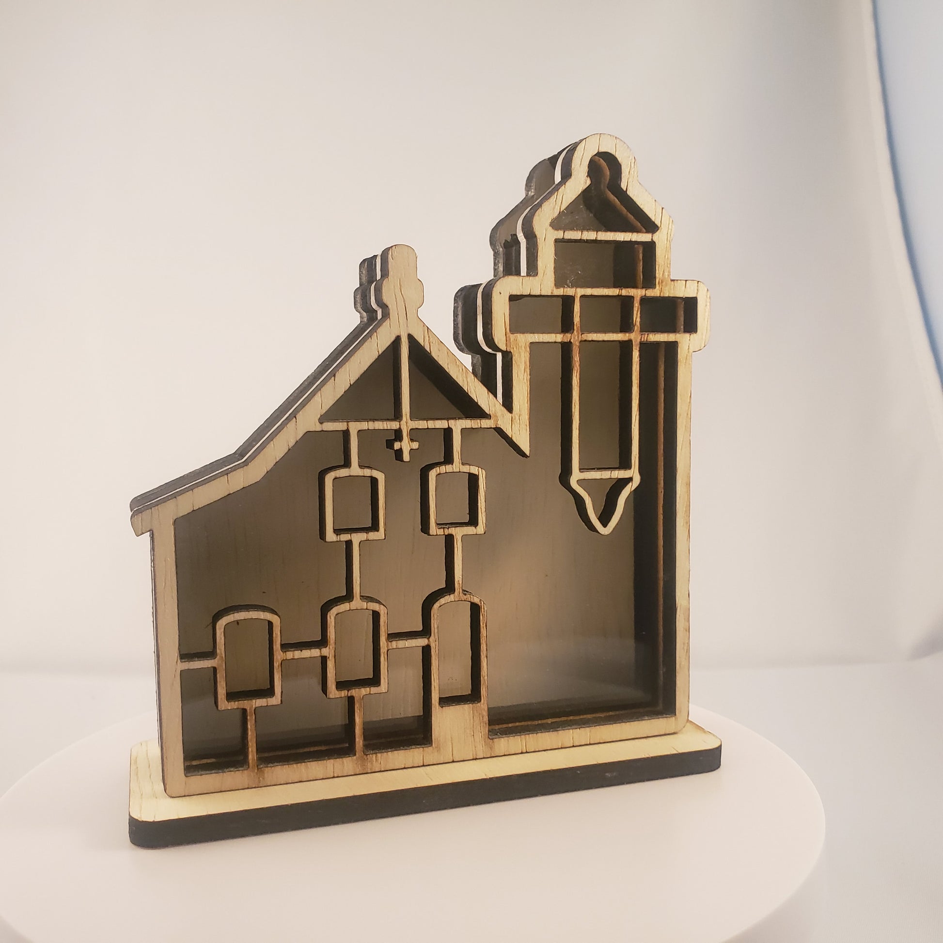 Bring a touch of the Apostle Islands into your home with our Small Sand Island Lighthouse Sea Glass Display. This beach glass display features this iconic lighthouse and lets your vibrant sea glass shine beautifully from any angle. Its compact size makes it a perfect accent piece for any shelf or table, adding a serene, nautical touch to your decor.