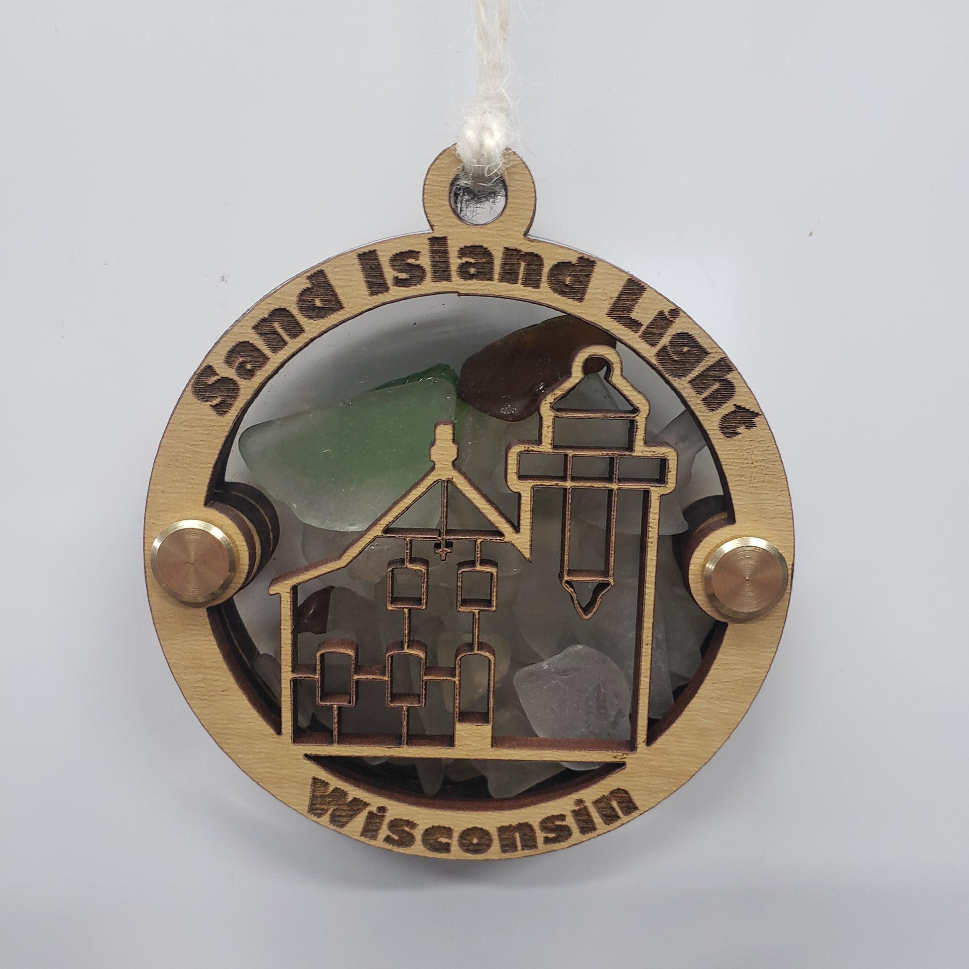 Sand Island Lighthouse Beach Glass Shadowbox Ornament, Apostle Islands, Bayfield, WI