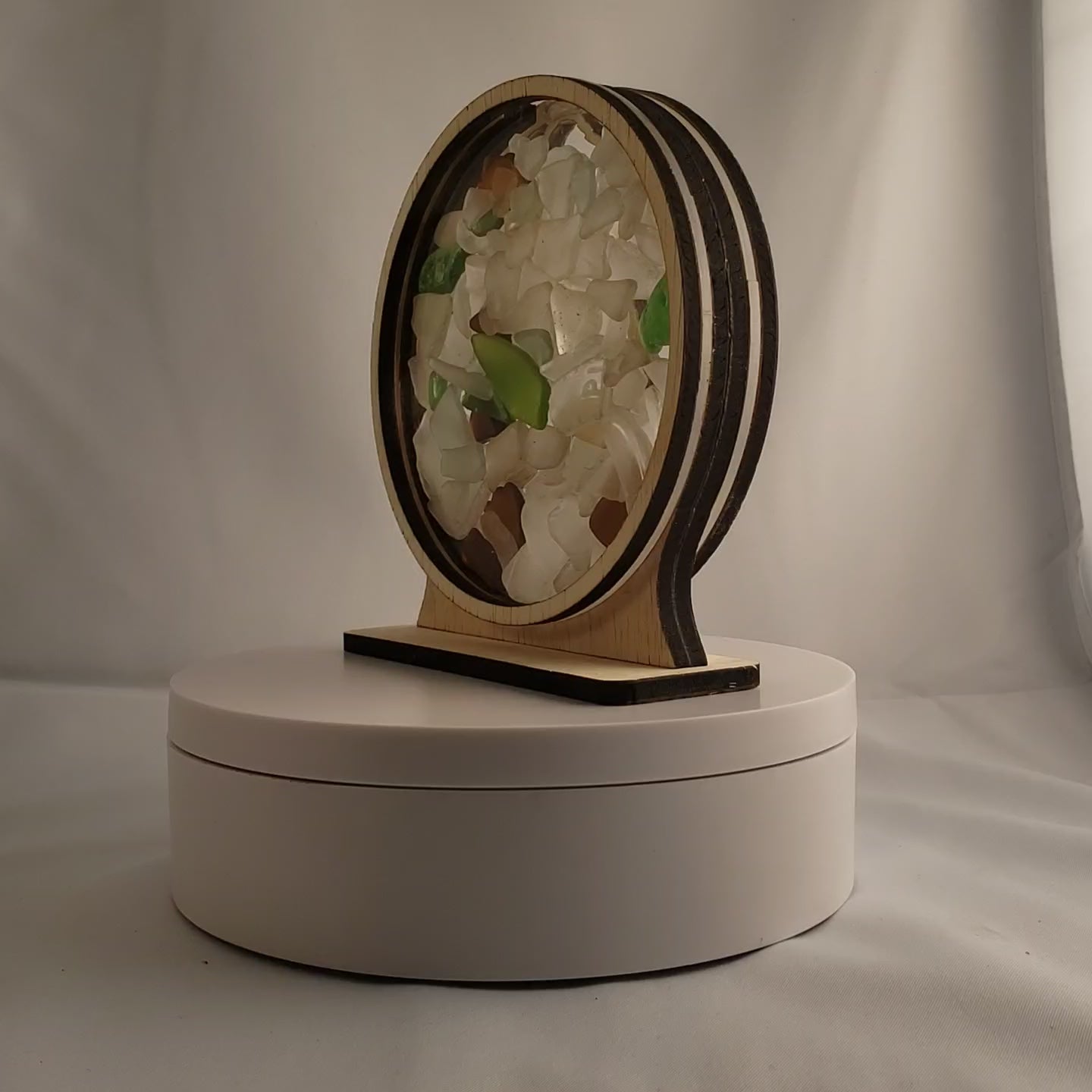 Choose from 13 different color options. The face plate will be dyed the color of your choosing. The double sided Display and LED Night Light versions will be dyed on the front and back. The single sided and window hanging versions will be dyed on the front only. The opening to add your beach glass pieces measures approximately 0.75in x 0.5 in. Sea Glass Not Included.