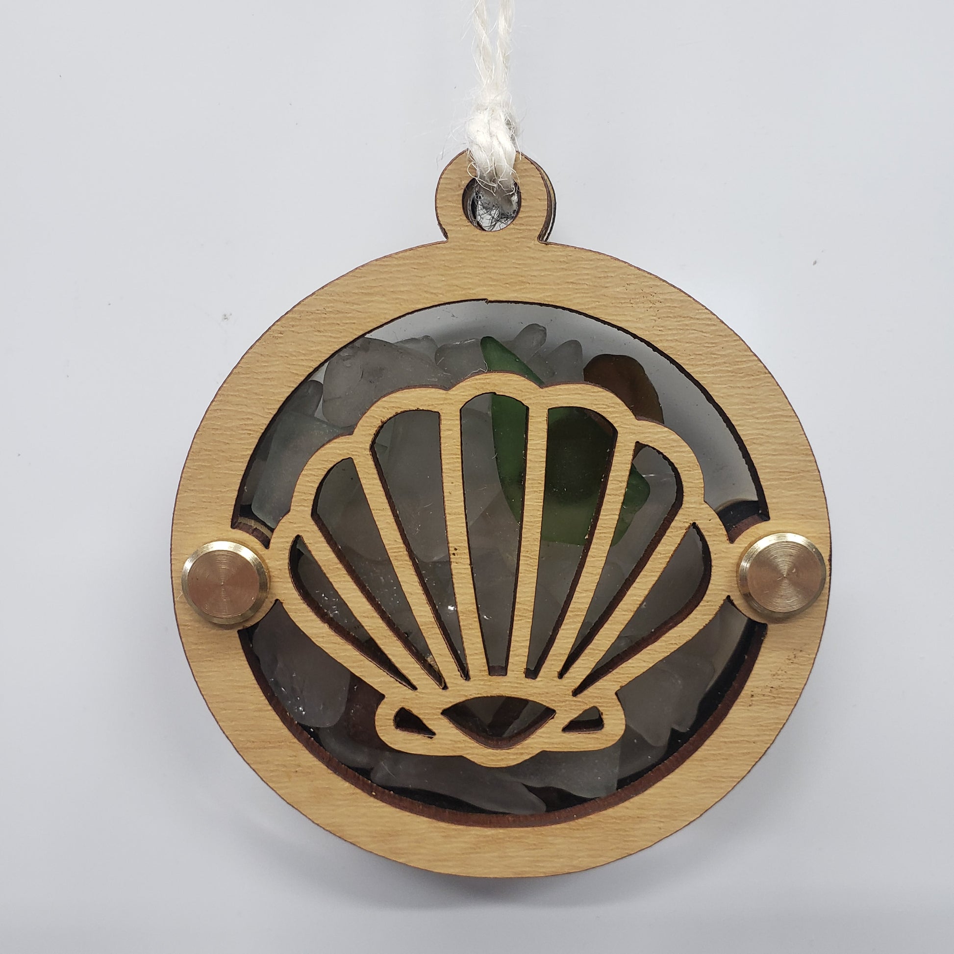 Sea Shell Clam Shell Sea Glass Beach Glass Shadowbox style ornament.