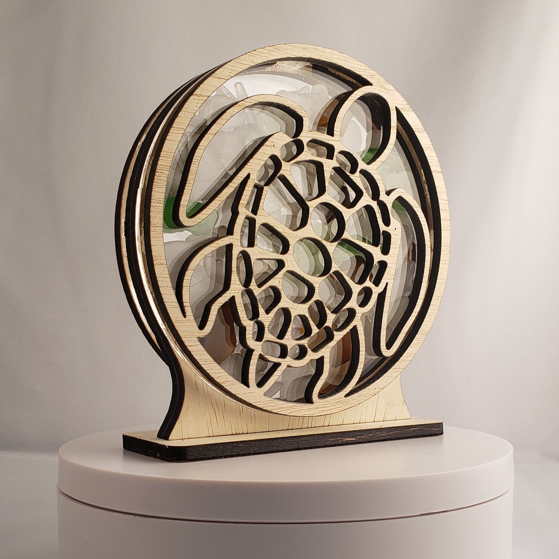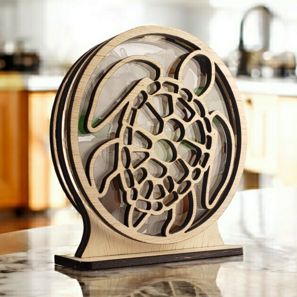 Sea Turtle Sea Glass Shadowbox Display Single Sided, Window Hanging, Double Sided Shine-through Shelf Sitter, LED Light, Small