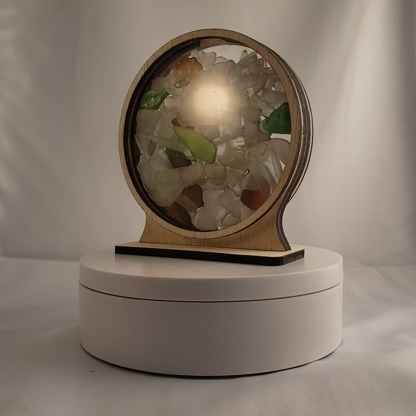 Choose from 13 different color options. The face plate will be dyed the color of your choosing. The double sided Display and LED Night Light versions will be dyed on the front and back. The single sided and window hanging versions will be dyed on the front only. The opening to add your beach glass pieces measures approximately 0.75in x 0.5 in. Sea Glass Not Included.