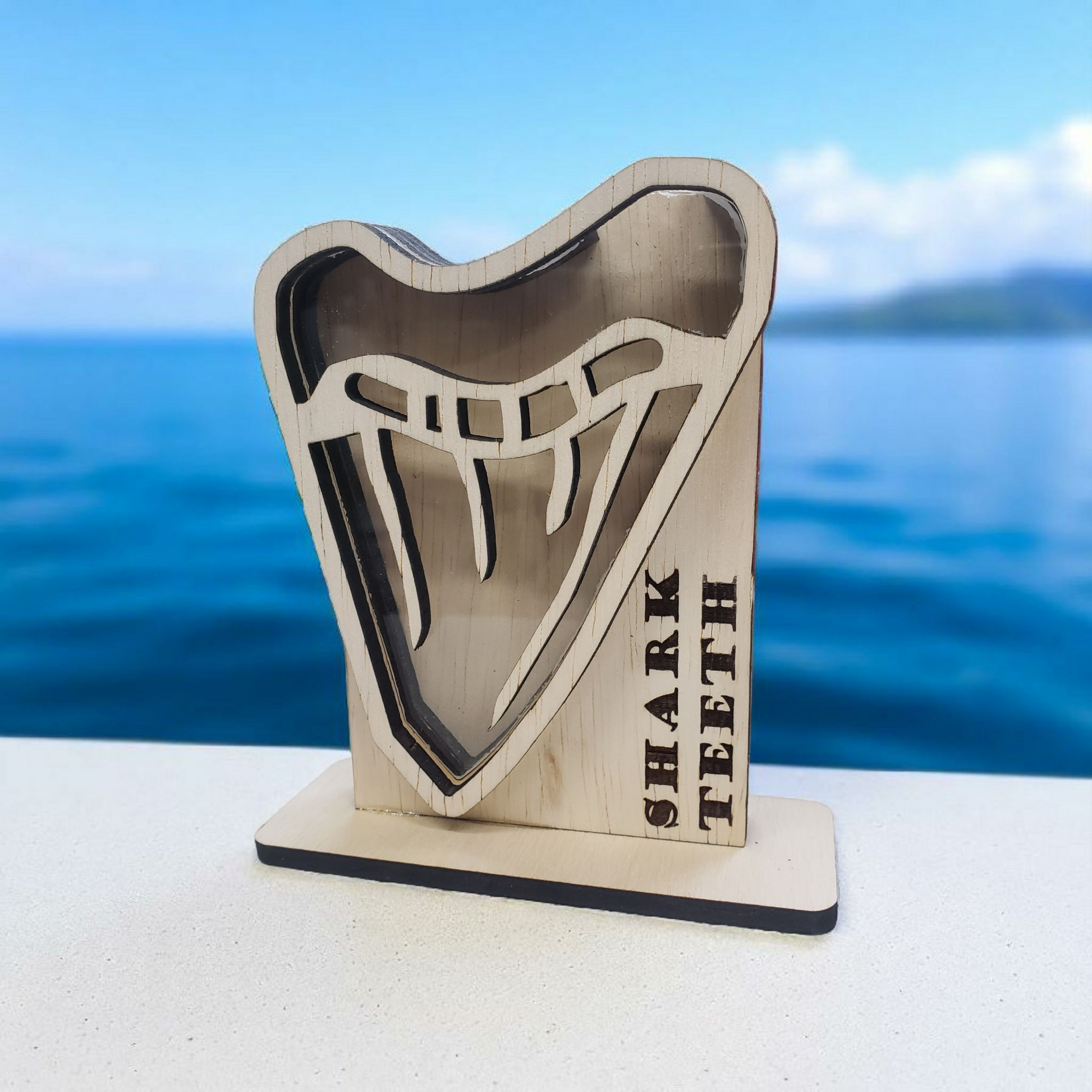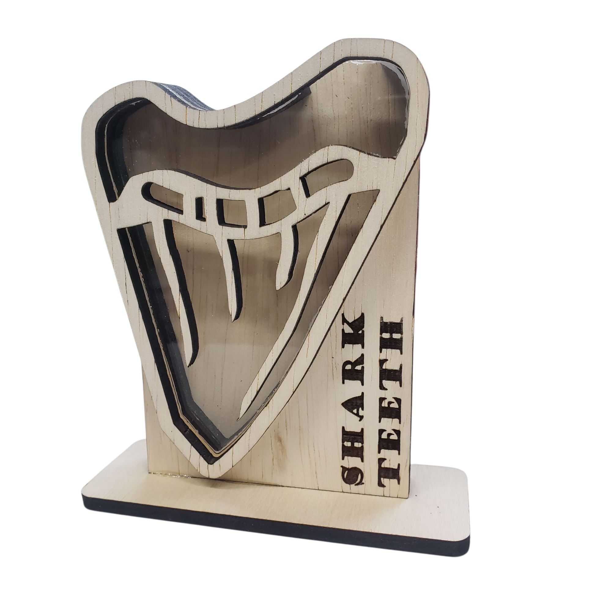 Shark Tooth Megalodon Tooth Sea Glass Shadowbox Display Single Sided, Window Hanging, Double Sided Shelf Sitter, LED Light, Small