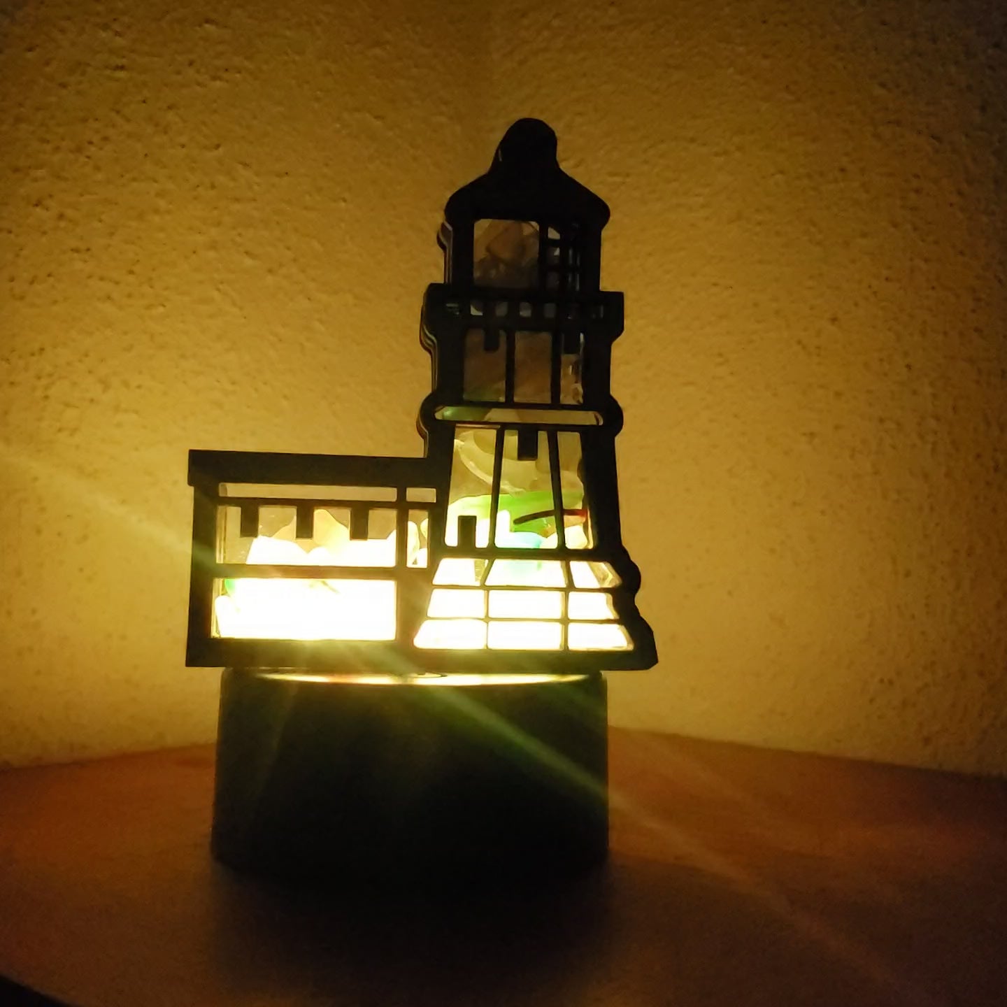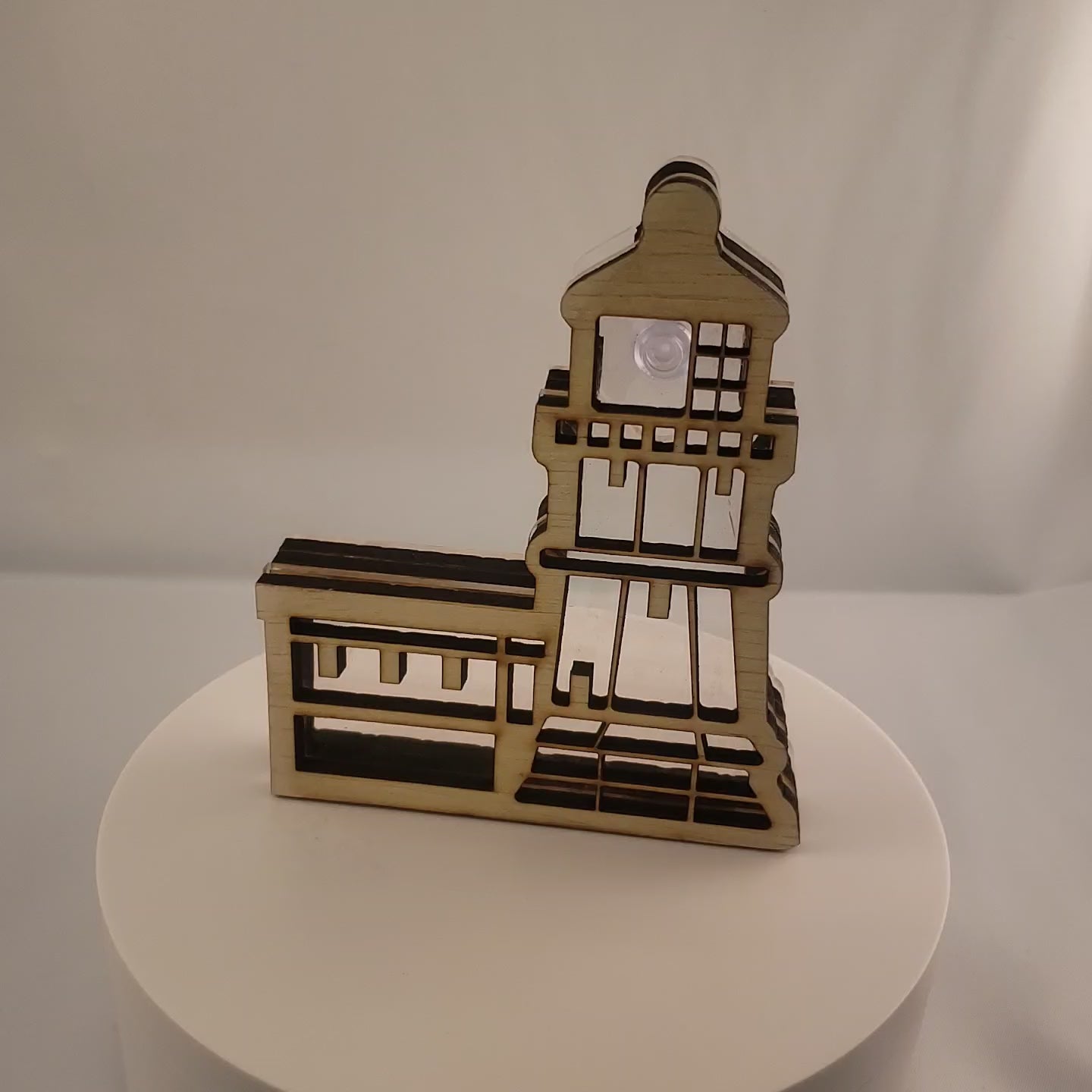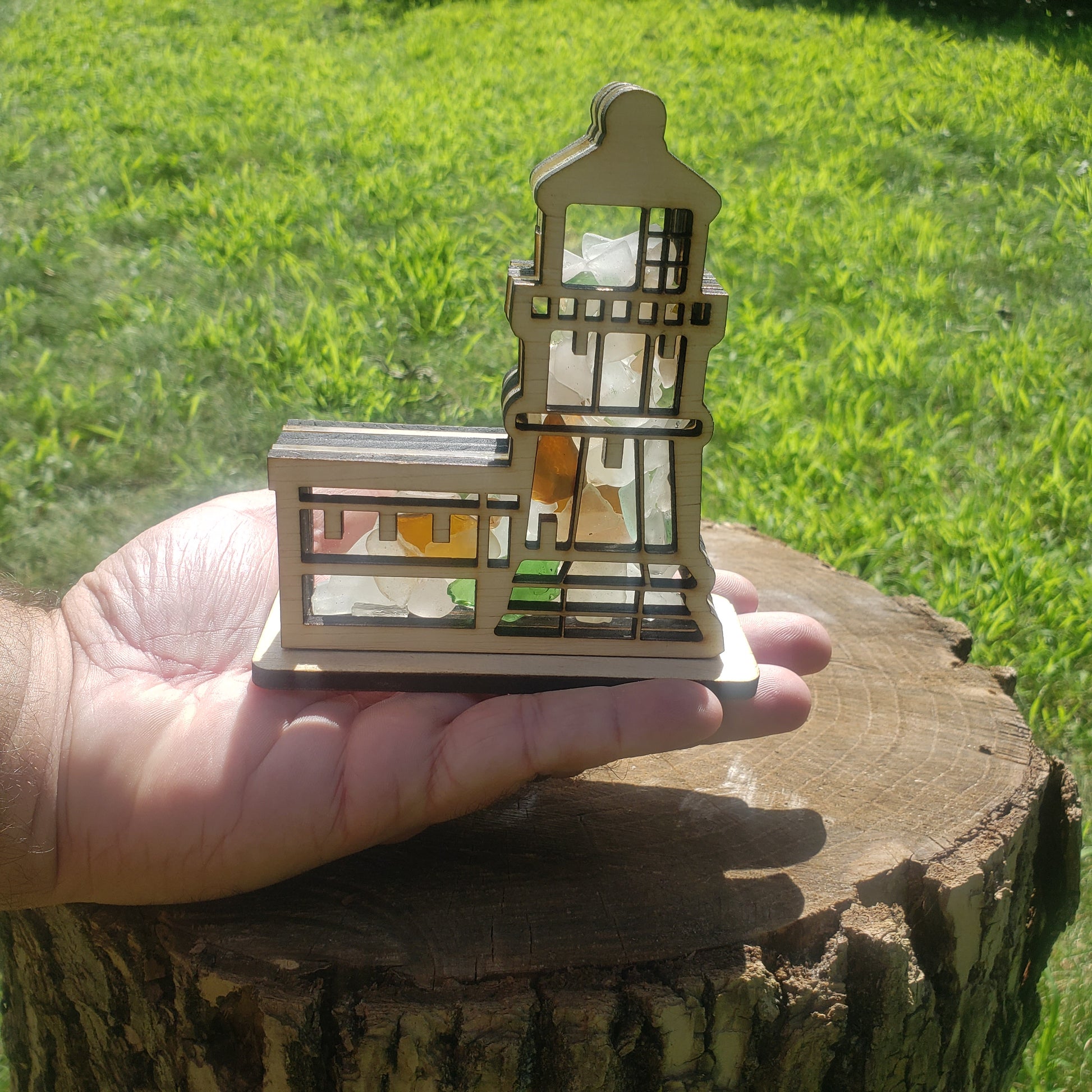 Split Rock Lighthouse Sea Glass Shadowbox Display Single Sided, Window Hanging, Double Sided Shine-through Shelf Sitter, LED Light, Small