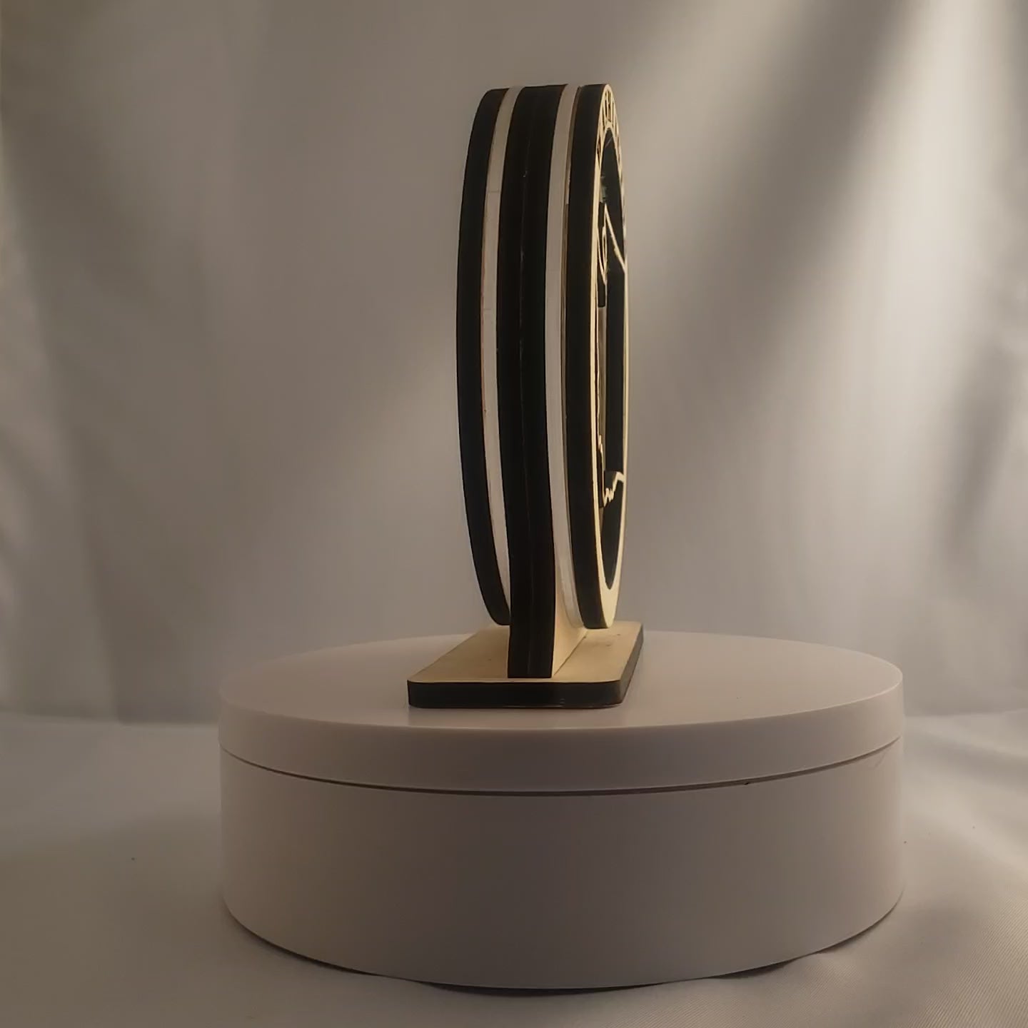 Choose from 4 display styles: *Single Sided with wood back *Double sided with clear acrylic back *Window Hanging with included suction cup *LED Night Light base with Remote control